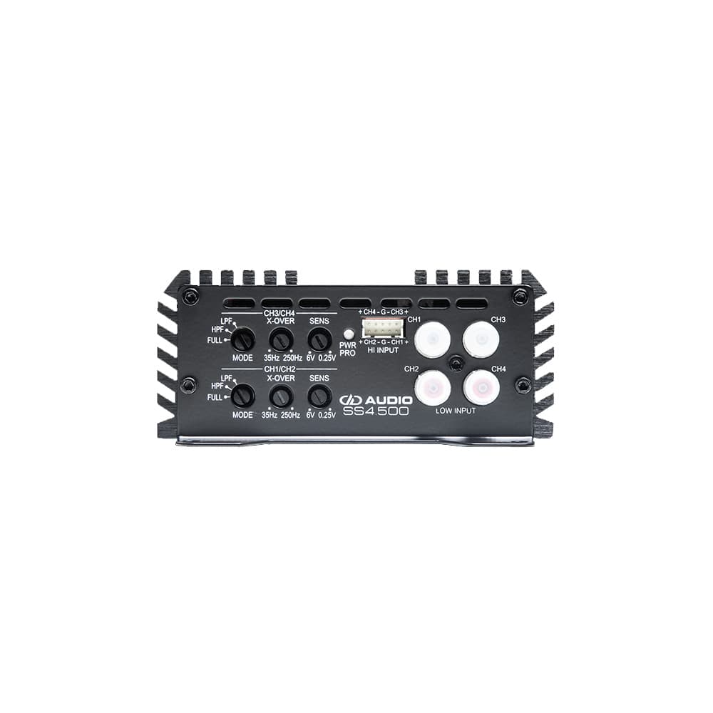Ο SS4.500 είναι ένας ενισχυτής 4 καναλιών που αποδίδει τουλάχιστον 125 Watt ανά κανάλι από ένα απλό αποτύπωμα 30 τετραγωνικών ιντσών. Αυτή η ευέλικτη, υψηλής ταχύτητας σχεδίαση κατηγορίας D μπορεί να οδηγήσει εξαρτήματα πλήρους εμβέλειας και υπογούφερ μέσω επιλέξιμων crossover υψηλής διέλευσης και χαμηλής διέλευσης. Αυτοί οι εξαιρετικά μικροί ενισχυτές είναι ο απόλυτος συνδυασμός ποιότητας ήχου ακριβείας και ευκολίας εγκατάστασης.