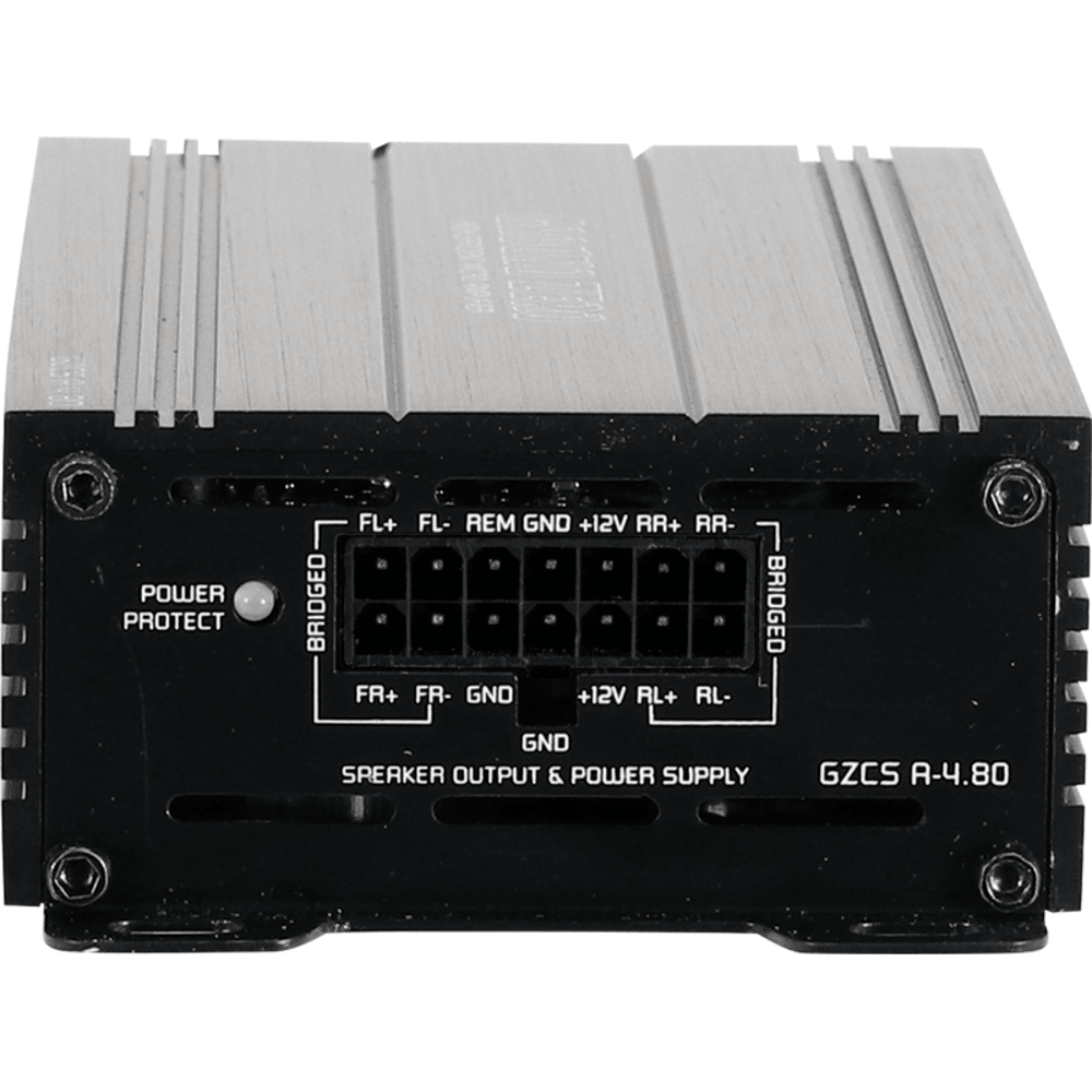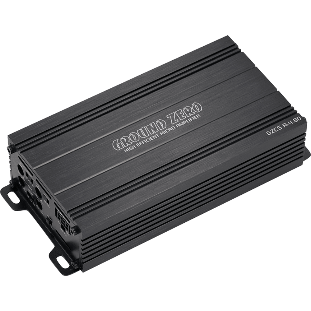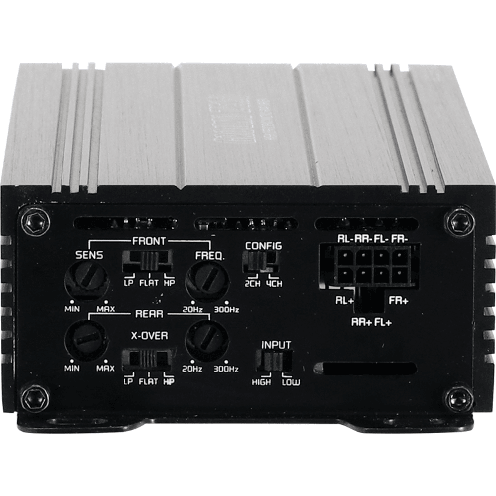 4-channel amplifier with small dimensions, integrated active crossover and auto-on function