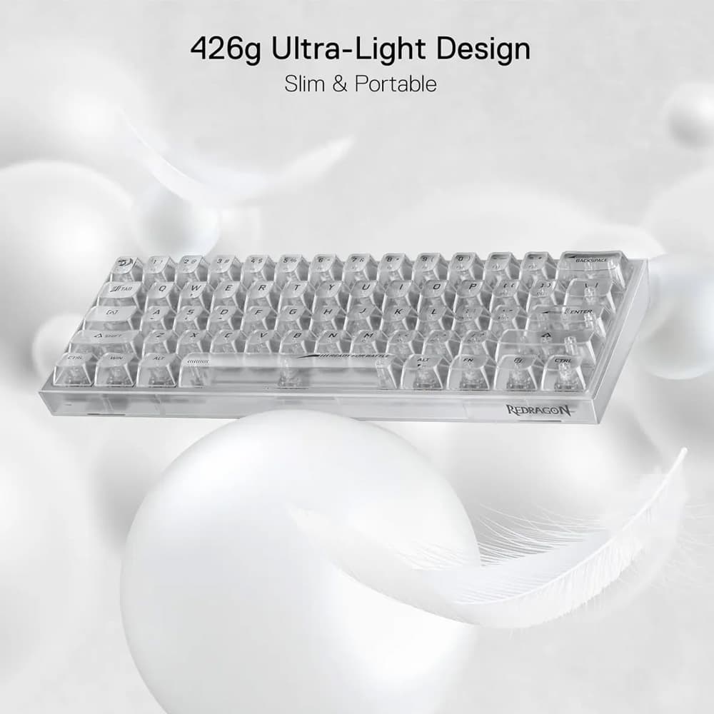 Slim Fresh K617: Το νέο ενσύρματο πληκτρολόγιο διάταξης 60% της Redragon σε αναζωογονητικό διαφανές στιλ. Συμπαγή πλήκτρα 61 με διαφανείς διακόπτες, ειδικά για παίκτες FPS.Το K617 SE μπορεί να υπερηφανεύεται για την μοντέρνα, πλήρως διαφανή, φανταχτερή σχεδίαση, τα πλήκτρα, οι διακόπτες και ακόμη και ολόκληρη η πλακέτα είναι όλα κατασκευασμένα από διαφανή υλικά. Ένα μοναδικό κομμάτι ηλεκτρονικών συσκευών στην επιφάνεια εργασίας, αφήνει το υπέροχο φως να λάμπει στο μέγιστο επίπεδο με αναμμένο οπίσθιο φωτισμό.
