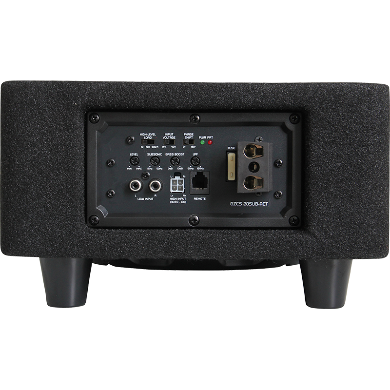 Car specific 20 cm / 8″ subwoofer loaded active enclosure for vehicles with limited space